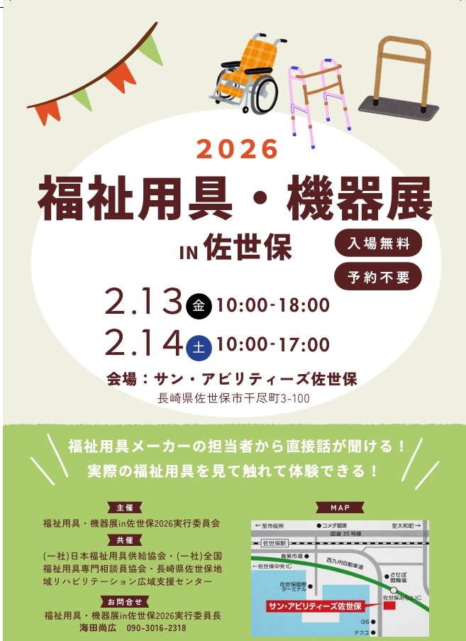 福祉用具・機器展in佐世保2026実行委員会 様主催の2026 福祉用具・機器展 in 佐世保に出展いたします。